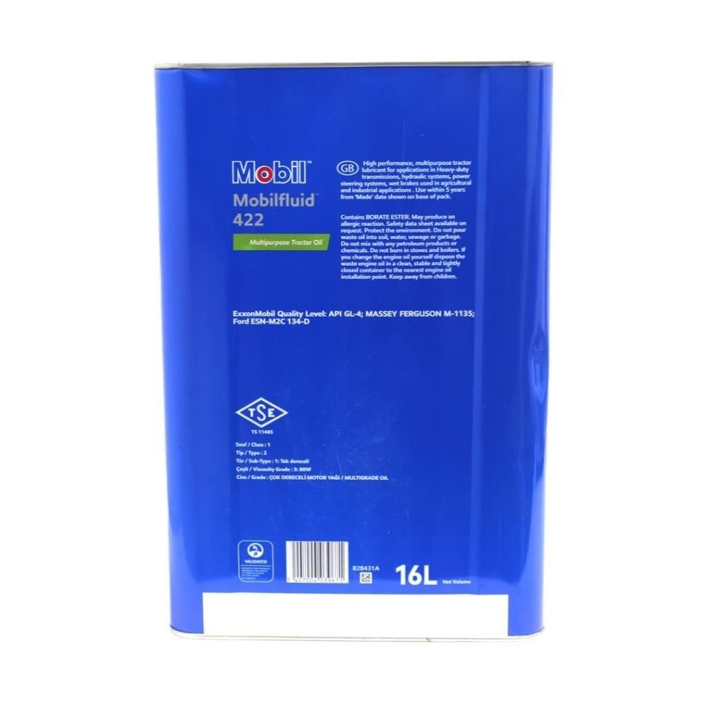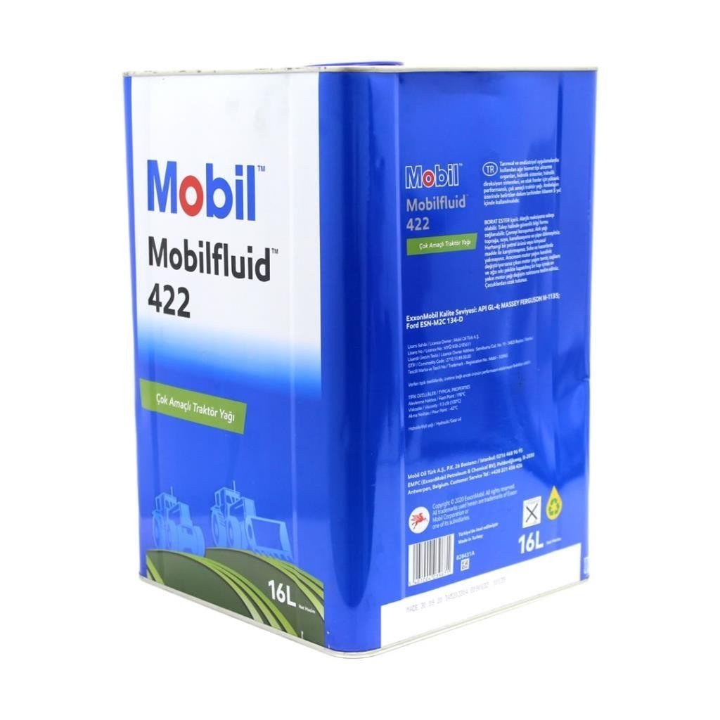 Mobilfluid 422, şanzıman ve hidrolik sıvısı gereksinimlerini karşılamak veya aşmak için tasarlanmış yüksek performanslı, çok amaçlı bir traktör yağıdır. Bu ürün, tarım alanlarında ve endüstride kullanılan traktörler ve diğer gezici ekipmanların şanzımanlarında, tahrik ünitelerinde, hidrolik sistemlerinde ve özellikle yağ banyolu fren sistemlerinde kullanılan yağın seviyesinin tamamlanması veya yeniden doldurulması amacıyla formüle edilmiştir. Islak fren sistemlerindeki ötme ve takırdama seslerini önlemek ve istikrarlı fren performansı sağlamak için özel sürtünme karakteristikleri ile tasarlanmıştır. Mobilfluid 422, ağır hizmet dişli aktarma organları ile ağır yüke maruz son tahrik ünitelerinin ihtiyaç duyduğu değişik yağlayıcı performans özelliklerini sağlamak amacıyla, yüksek performanslı baz yağlar ile gelişmiş bir katık sisteminin birleşiminden meydana gelmiştir.